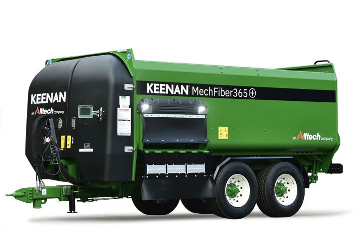 The KEENAN MechFiber365+ is in the large-sized range, feeding 100-140 dairy cows per load or 200-280 beef finishers. The machine comes with a heavy-duty sealed oil-bath drive system which is self-lubricating for ease of maintenance. A central greasing manifold allows all front bearings to be greased from one location.